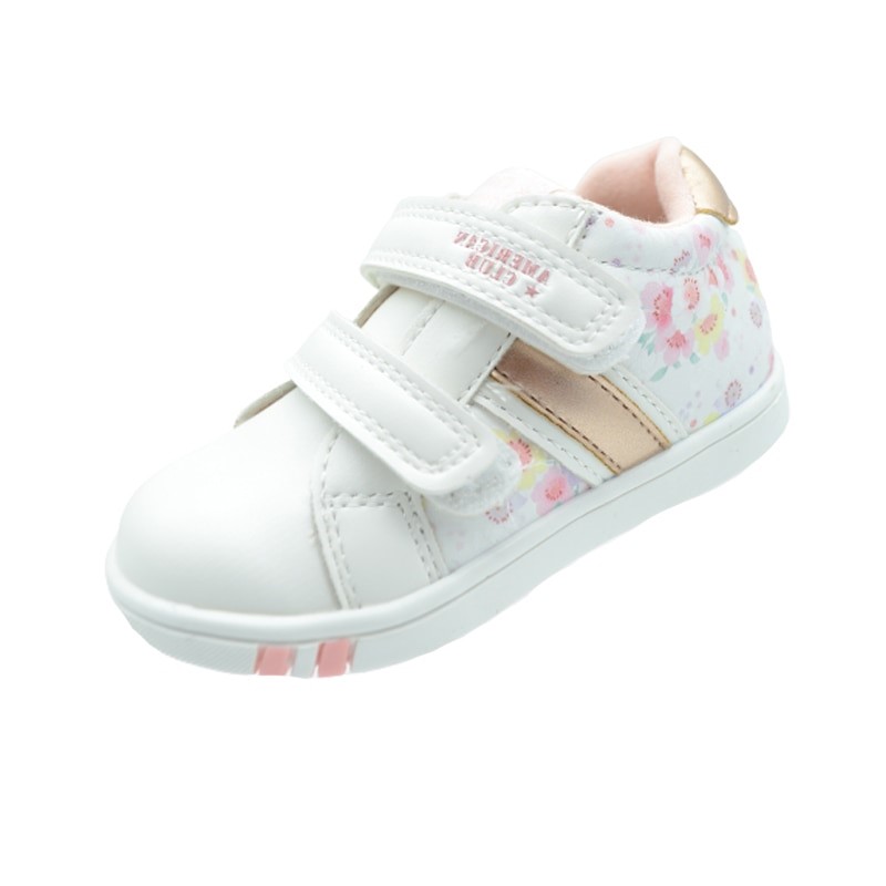 Dievčenské tenisky American Club v ružovej farbe s kvetmi. Topánky majú pohodlnú gumenú podrážk. Topánky majú pohodlné a praktické dvojité zapínanie na suchý zips s reguláciou, aby sa topánky lepšie prispôsobili nohe. Dievčenské športové topánky sú vyrobené z príjemnej ekokože. Vo vnútri pohodlná kožená stielka.