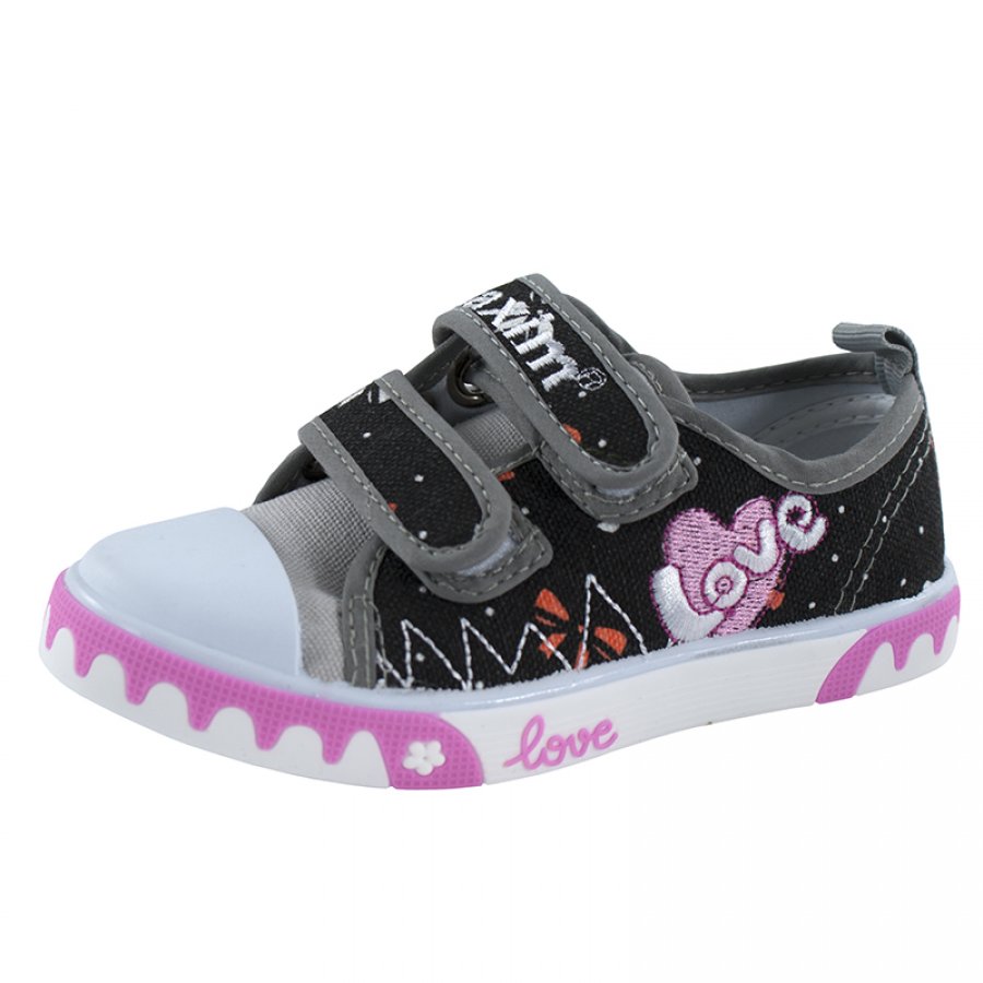 Detské plátenné tenisky z najnovšej kolekcie Axim. Topánky sú vyrobené z prírodných tkanín, príjemné na nohy dieťaťa, vnútri kožená tvarovaná vložka. Ďalšou výhodou je, že sú stabilné a majú pevnú gumenú podrážku. Guma vpredu chráni končeky prstov pred zranením. Topánky sú ideálne ako prezuvky, ale aj ako obuv v škôlke a v škole, ideálne pre letné dni aj pri hre. Suchý zips umožňuje jednoduché obúvanie.