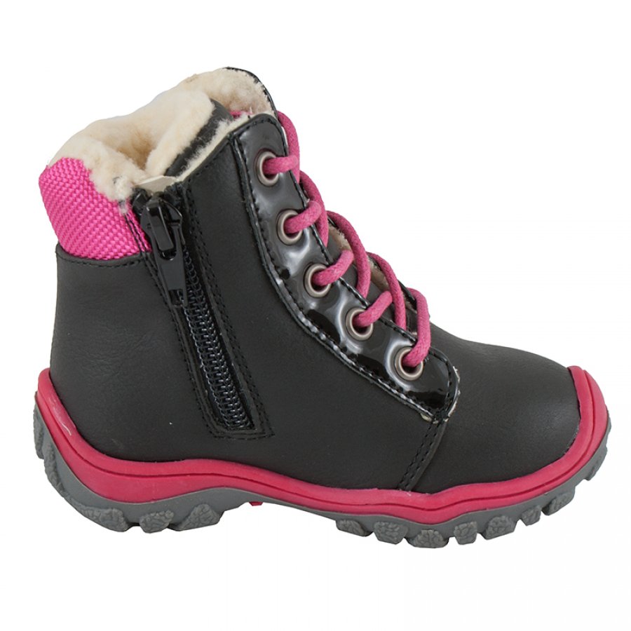 Obuv z vonkajšej strany je vyrobená z ekologickej kože, teplá podšívka. Na vnútornej strane je zips, ktorý uľahčuje obúvanie a vyzúvanie, navyše ďalšou výhodou sú šnúrky, ktoré umožňujú variabilné nastavenie šírky hornej časti. Topánky majú zosilnenú pätu a špičku, a vzadu sú chránené gumou.