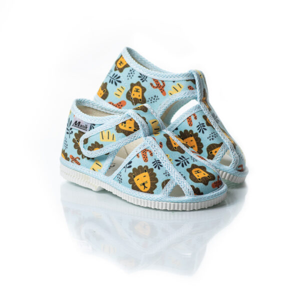 Detské papučky s uzavretou špicou a zapínaním na suchý zips. Jednoduché zapínanie ideálne aj pre našich najmenších. Papučky sú vyrobené z ľahkých a pružných materiálov, a v klenbovej časti sú vystužené ideálne tuhou penou pre podporu zdravého vývoja detskej nožičky. Strih papučiek je prispôsobený detskému chodidlu aby nespôsobovali deformáciu pri vývoji chodidla.
