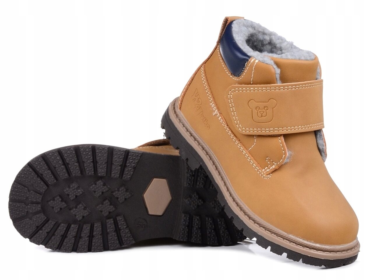 Zimné chlapčenské topánky z eko kože. Protišmyková a pružná podrážka. Vnútro a stielka sú zateplené ovčou kožou.  Výška podpätku/platformy (cm): 2 cm. Horná výška (cm): 7,5. Vnútro a stielka sú plne zateplené ovčou kožou. Zvýšená päta a stabilné bočnice zaisťujú správnu polohu chodidla.